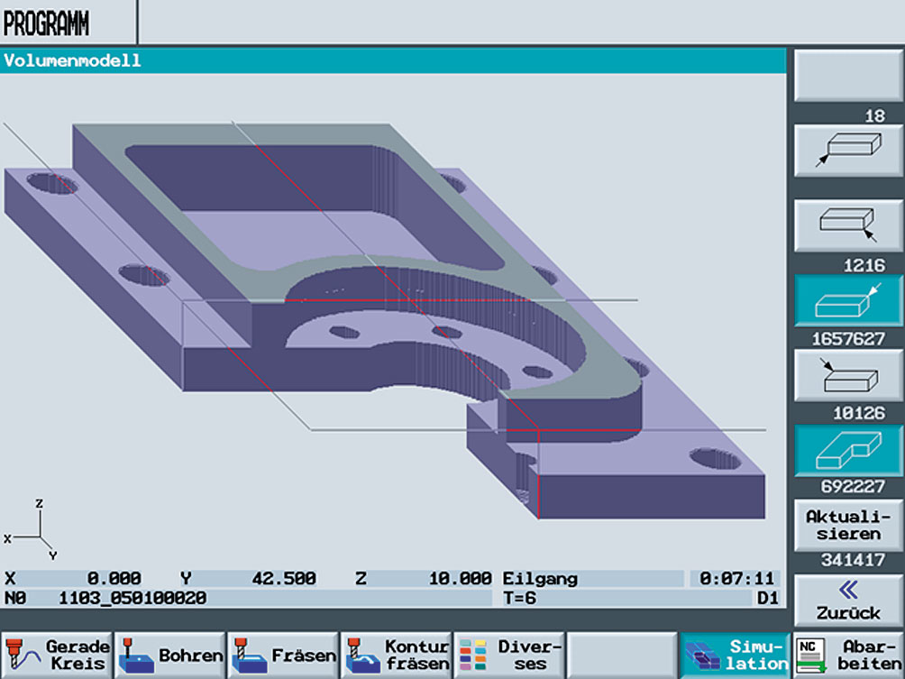 Nutzerorientiert ist auch die optimale Darstellung im modernen Windows-Style. SINUMERIK Operate ist auch in Sachen grafische Unterstützung ein neuer Standard in der Usability. „Animated Elements“ sind dabei eine hilfreiche Funktion, denn sie geben vorausschauend jeden Bearbeitungsschritt als grafisch animierte Simulation wieder.